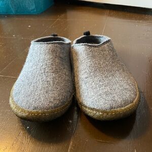 Outdoor wool slippers worn a handful of times. In great shape, just a little discoloration on the soles from normal sidewalk use.