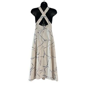 The Ashley Dress is perfect for warm-weather days. Crafted from a lightweight cotton linen blend, it is adorned with a contemporary print. The design features a cross over back and an invisible zipper closure at the back. It has been designed with a midi length skirt for a classic, feminine silhouette.