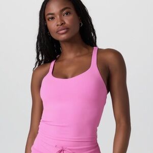 Stylish pink leggings by Vuori. Perfect for workouts or casual wear. Comfortable and flexible fit.