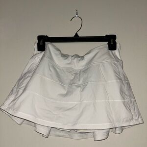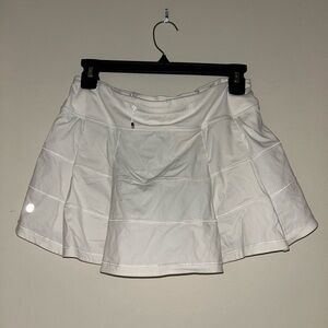 This white mini skirt from Lululemon Athletica features a skater style with pleated details, perfect for athletic and casual occasions. Its lightweight fabric ensures comfort and ease of movement, making it an ideal choice for active days.