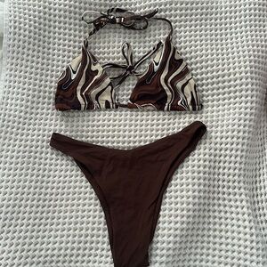 NWT Free People FP Beach Cabo sweater skirt set, size Medium. Color is Blue Heron. Only the top comes with the tag, pull on style skirt with drawstring sides. More of a stretchy terry cloth knit style material
