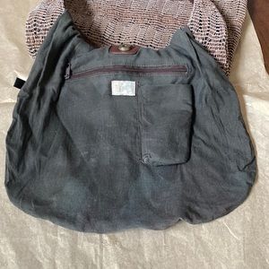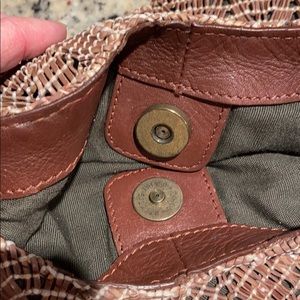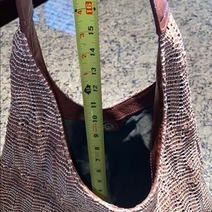 Cute hobo raffia textured bag with brown shoulder strap.