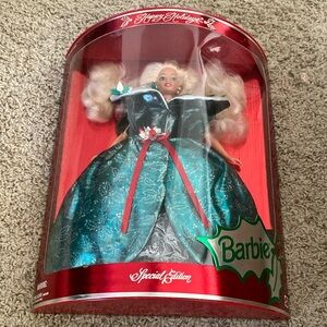 Dahlia doll from Barbie Fairytopia. Features pink hair and a teal dress. Includes fairy wings.