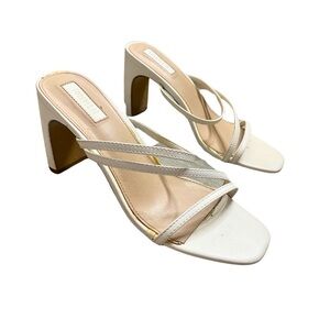 Elegant white strappy heels. Block heel design. Perfect for any occasion.