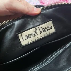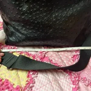 Ostrich black leather handbag with cross body strap added. Roughly 9 x 15”. Custom bag by Laurel Dasso Leathers.