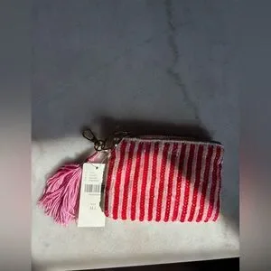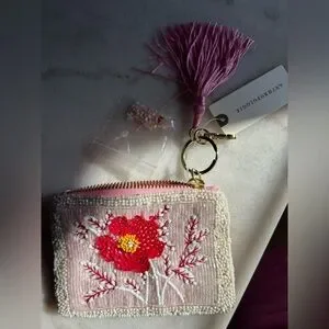 Anthropologie Fiona Beaded Bag Coin Card Charm Rose NWT Pink White
