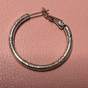 These Brighton silver hoop earrings feature a sleek and minimalist design, perfect for adding a touch of elegance to any outfit. Crafted with a polished finish, they reflect light beautifully, making them versatile accessories for various styles. Their delicate construction and consistent circular shape ensure they remain a timeless addition to your jewelry collection.