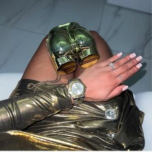 Shine with this unique silver metallic butt bag. You will be the center of attention with this little beauty! Perfect for making a bold statement. Elevate your style with this eye-catching bag!