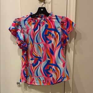(NWT) Sugarlips Floral Flutter Sleeve Dress with Smocked Insets on Each Side - Side Slit Pockets