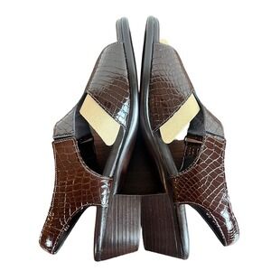 SAS Suntimer Sandals Women's 8 Narrow Brown Patent Leather Croc Block Heels