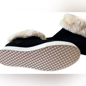 Steve Madden Black Suede Bootie with White Faux Fur Lining Trim Size 8-1/2 NWT