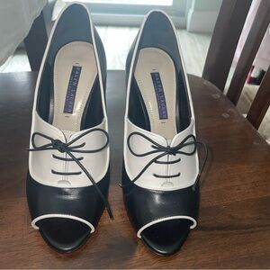 Ralph Lauren Purple Label Sz 37 Katia Leather Lace Up Oxford Heels Italy Made