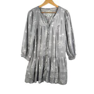 Kindred boho pleated artsy vibrant midi fit flare dress wrap sz L