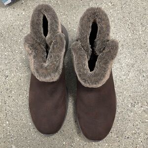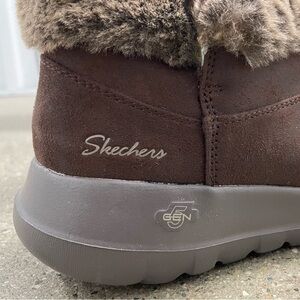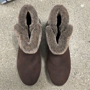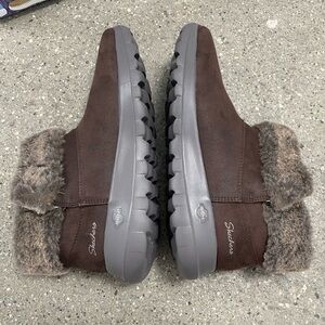 Skecher On-the-GO Joy Sherpa Lined Ankle Boots Happily Cozy - chocolate size 10