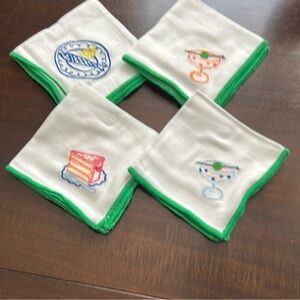 Kate Spade Embroidered Drink Napkins with Green Trim