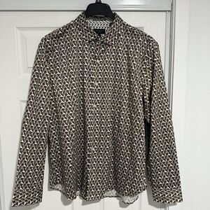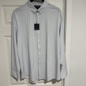 Easy fit, long sleeve, midi shirtdress with a tall hem ruffle, detachable sash, and a separate jersey slip lining
