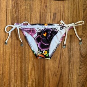 !SOLD! ED HARDY Vintage Y2K Rare White Love Life Rose String Triangle Bikini Set
