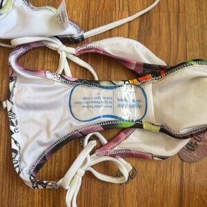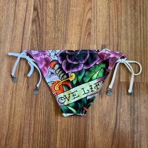 Vintage rare white and purple “Love “Life” string triangle bikini set by Ed Hardy.