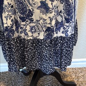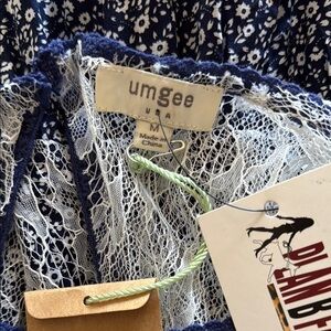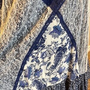 This elegant dress features a stunning combination of blue and white lace patterns, perfect for any occasion. The intricate design adds a touch of sophistication and style. Sheer lace in areas without liner