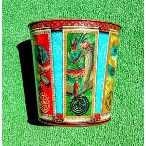 The inside of the bucket has retro/vintage style cartoon drawings.