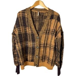 Free People Sepia Plaid Jacquard Oversized Cardigan Brown Size Small OB1530739