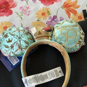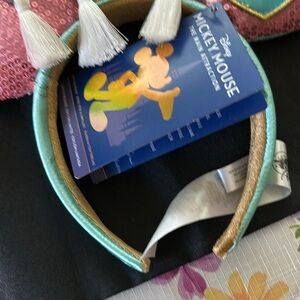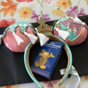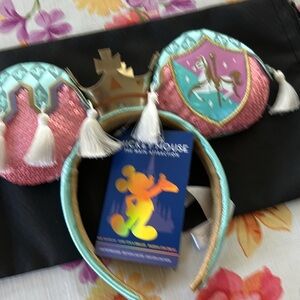 Charming Disney Princess headband with sequin ears. Features pink and teal colors. Ideal for magical adventures. These years are Prince charming combined with the carousel brand new tags on.