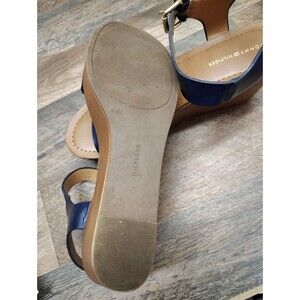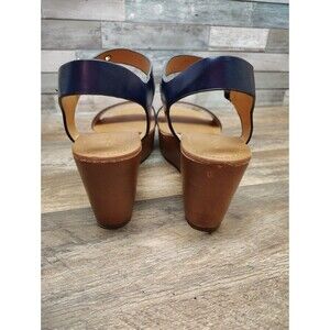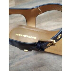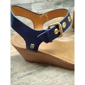 Tommy Hilfiger Navy Blue Wedge Platform Sandals Womens 9.5 Gold Logo Boho