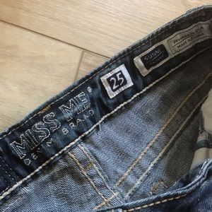 Size 25. Gently loved in great preowned condition. Miss Me, blue jeans.