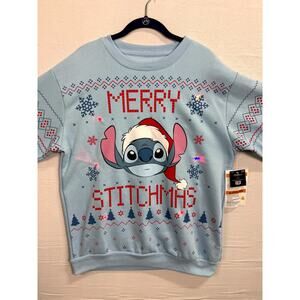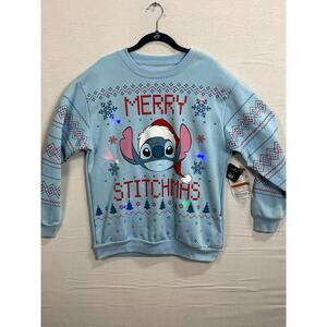 Disney Stitch Merry Stitchmas Christmas Sweatshirt Mens Large Blue Crew Neck