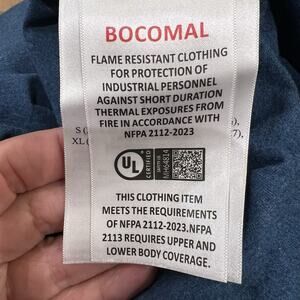 Bocomal FR Flame Resistant Mens T Shirt 5 Xl Blue Henley Long Sleeve Cat 2 Work