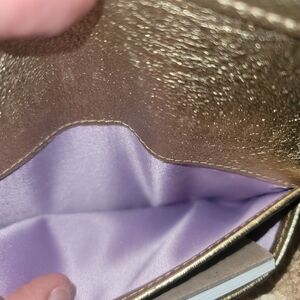 Elegant Coach wallet in shimmering gold. Stylish and functional design.
