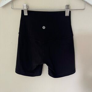 Experience the perfect blend of comfort and performance with these black athletic shorts from Lululemon Athletica. Designed with a high-waisted fit and crafted from a stretchy, form-fitting material, these shorts offer both style and functionality for your active lifestyle. Ideal for workouts or casual wear, they provide a sleek and versatile look.