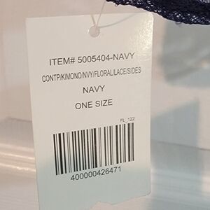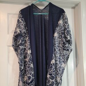 Navy cover up with white lace floral patterns. Perfect for any occasion.