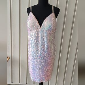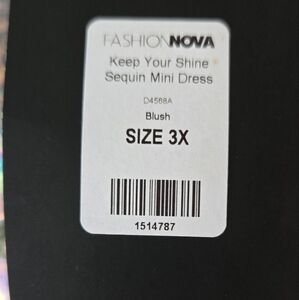 one size 3X new with tags blush pink sequin rear zipper mini dress. this dress is fully lined with padded cups and adjustable shoulder straps.