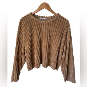 This Everlane bodysuit in a warm tan hue offers a sleek and minimalist design, perfect for versatile styling. Crafted from a smooth, stretchy fabric, it features a classic scoop neckline and a seamless silhouette. Ideal for layering or wearing as a top with jeans or slacks, this bodysuit is a wardrobe essential for any occasion.