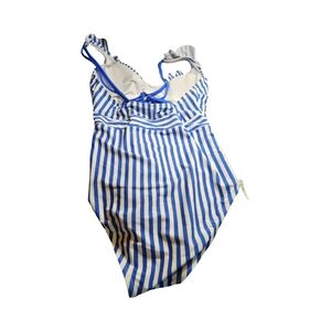1 NWOT Cupshe Blue/White Striped RuffleOne Piece Swimsuit with Plunging V-Neck