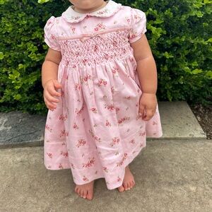Adorable pink kids dress with charming floral patterns. Perfect for any occasion. Size 18mo