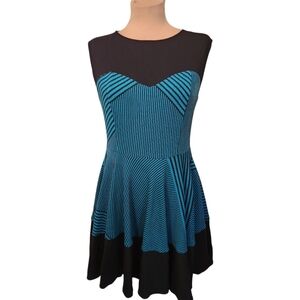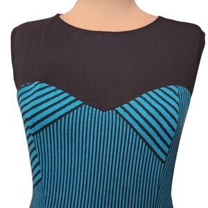 ANTHROPOLOGIE x EVA FRANCO Teal & Black Striped Swing Dress - Size 10