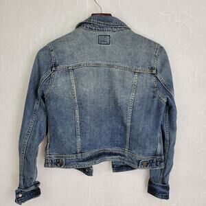 American Eagle Womens Jacket Size M Blue Light Washed Long Sleeve Collared Denim