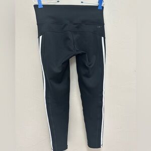 Adidas Climalite Black Stripe Logo Mid Rise Workout Athletic Yoga Leggings