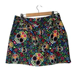 LoudMouth Classic Skort - Mosaic Skulls Size 12 Casual Dia de Muerte Mexican