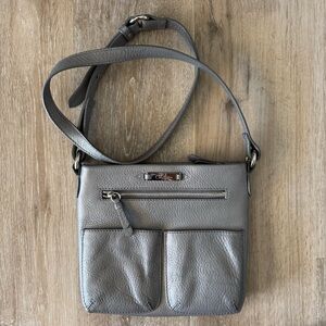 Stylish and versatile gunmetal leather crossbody bag. Perfect for everyday use with multiple pockets for convenience.