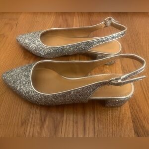 J.Crew Sparkle Glitter Silver Slingback Flats