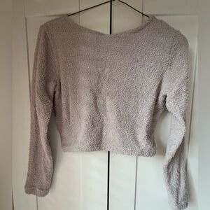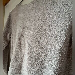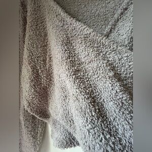 Soft and cozy wrap sweater in a light beige gray color. Perfect for layering.