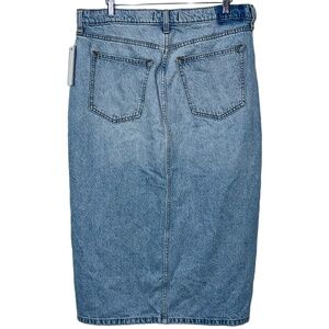 NEW NWOT Abercrombie & Fitch High Rise Blue Denim Medium Wash Cotton High Slit Midi Skirt Womens Size 32, Size 14