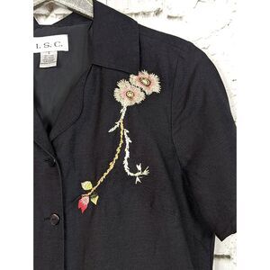 VINTAGE Floral Embroidered Linen-Blend Shirt Black Cottage Boho Coastal Small