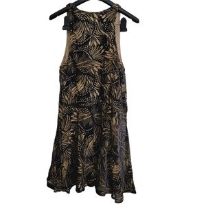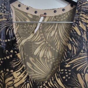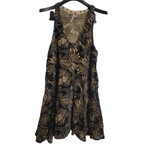 Free People Ellie Burnout Tan Black Velvet V Neck Studded Flounce Lined Mini Dress XS