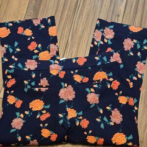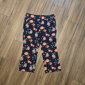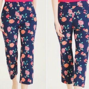Chico's Navy Blue Floral Rose Print High Rise Ankle Pants Trousers Size 1 -Small