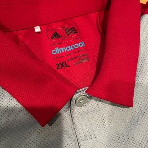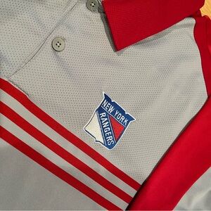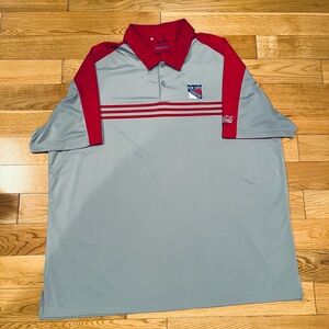 🏒 Mens ADIDAS ClimaCool short sleeve shirt. Size XXL. NY Rangers hockey emblem embroidered on chest area. Coca Cola Zero on left sleeve. ***PLEASE READ: there’s some discoloration on the back lower part of the shirt. I believe it’s from a belt. Please look closely at last 3 photos. Not sure if it will come out***. Price reflects condition. 🏒