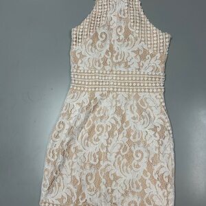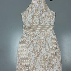NWT PRETTY LITTLE THING WHITE HIGH NECK LACE CROCHET BODYCON DRESS 8
